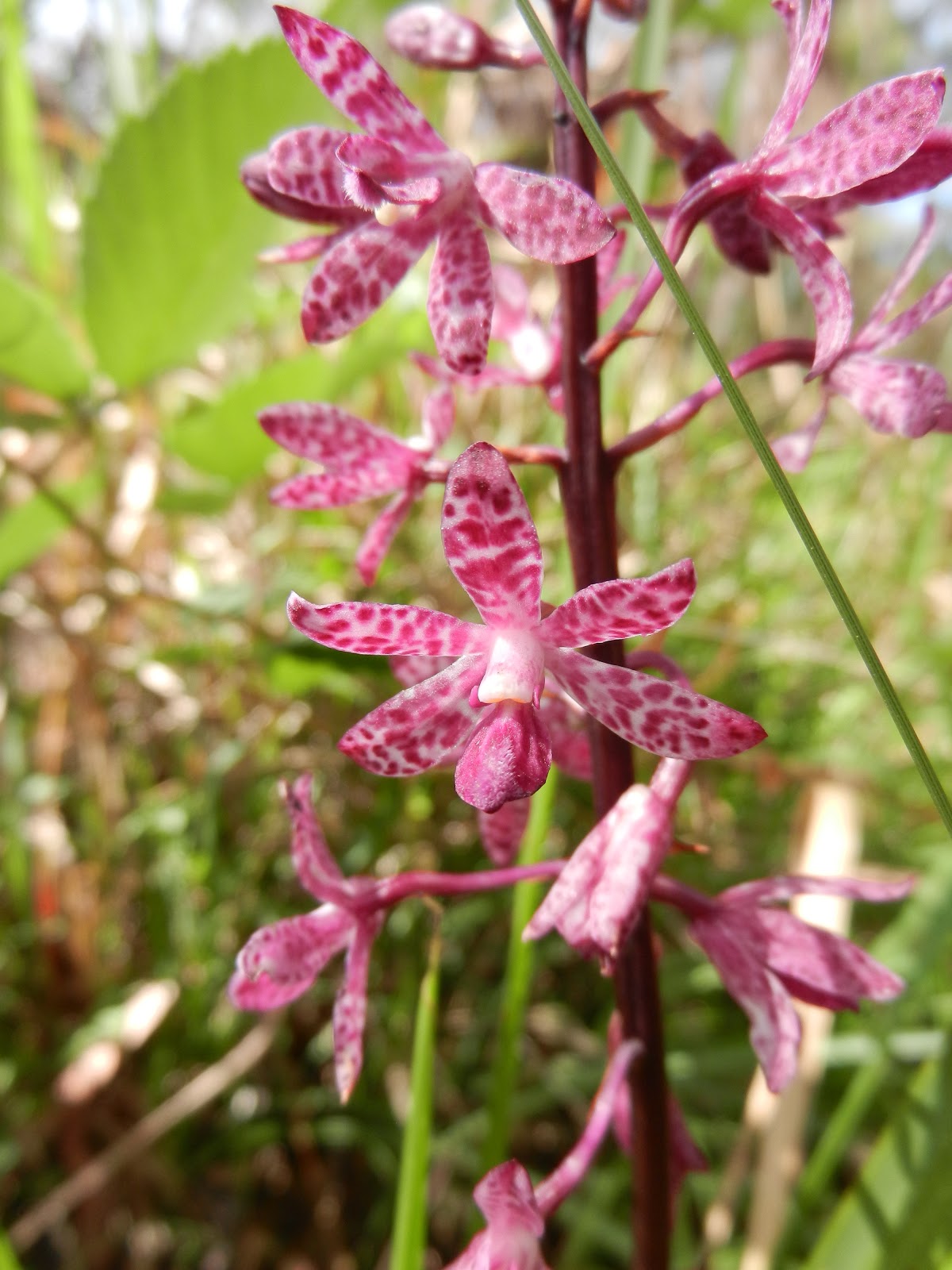 Dipodium punctatum (Blotched Hyacinth Orchid), found in a paddock. Some interesting information about this plant: ‘This orchid is from the saprophytic group, which means they exist totally on a soil borne fungus for survival, they also have no leaves and are impossible to grow as the fungus needs to be constantly replaced by surrounding natural vegetation. It is in many areas of NSW.’ Thanks to Alan Stephenson from the Australian Native Orchid Association (http://www.anos.org.au/) for this information. This reminded me that God only makes beautiful, perfect things and of how totally amazing, how much attention to detail, how precise and specific God is!