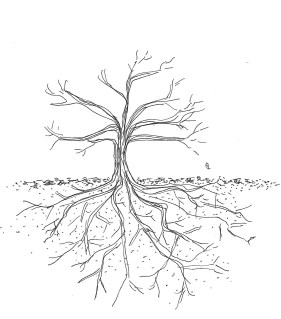 As well as having branches and twigs, I also have roots with little shoots of roots coming off them. The roots are all the causal emotions and the little shooty bits coming off are the blocks, and that is all UNDERGROUND. That to me represents all the raw, ugly, stinky, ‘un-mentionable’ emotions that I