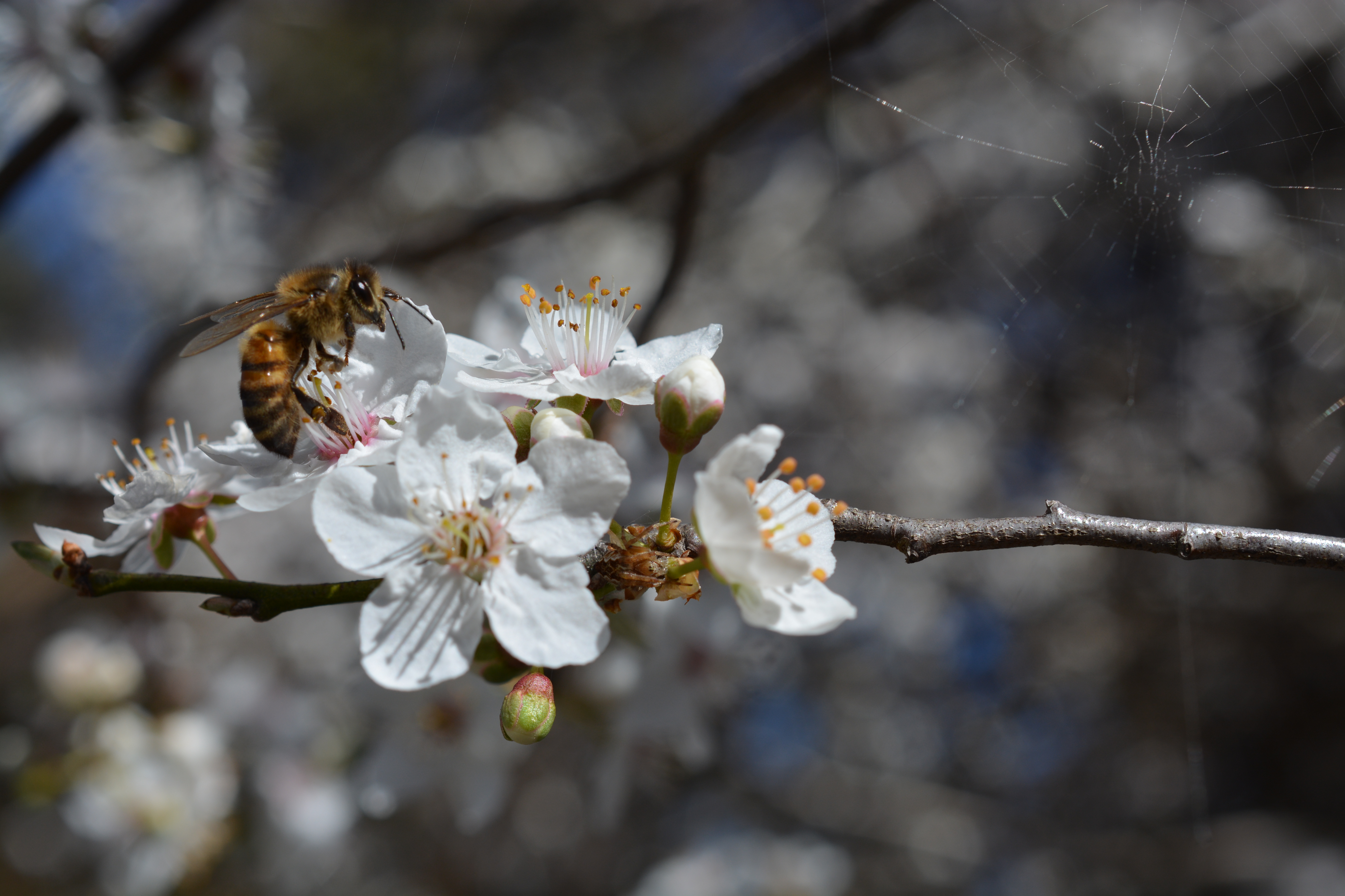 Bee on white flower Published August 25, 2013 at 6000 × 4000 in Bee on white flower Bee on white flowers